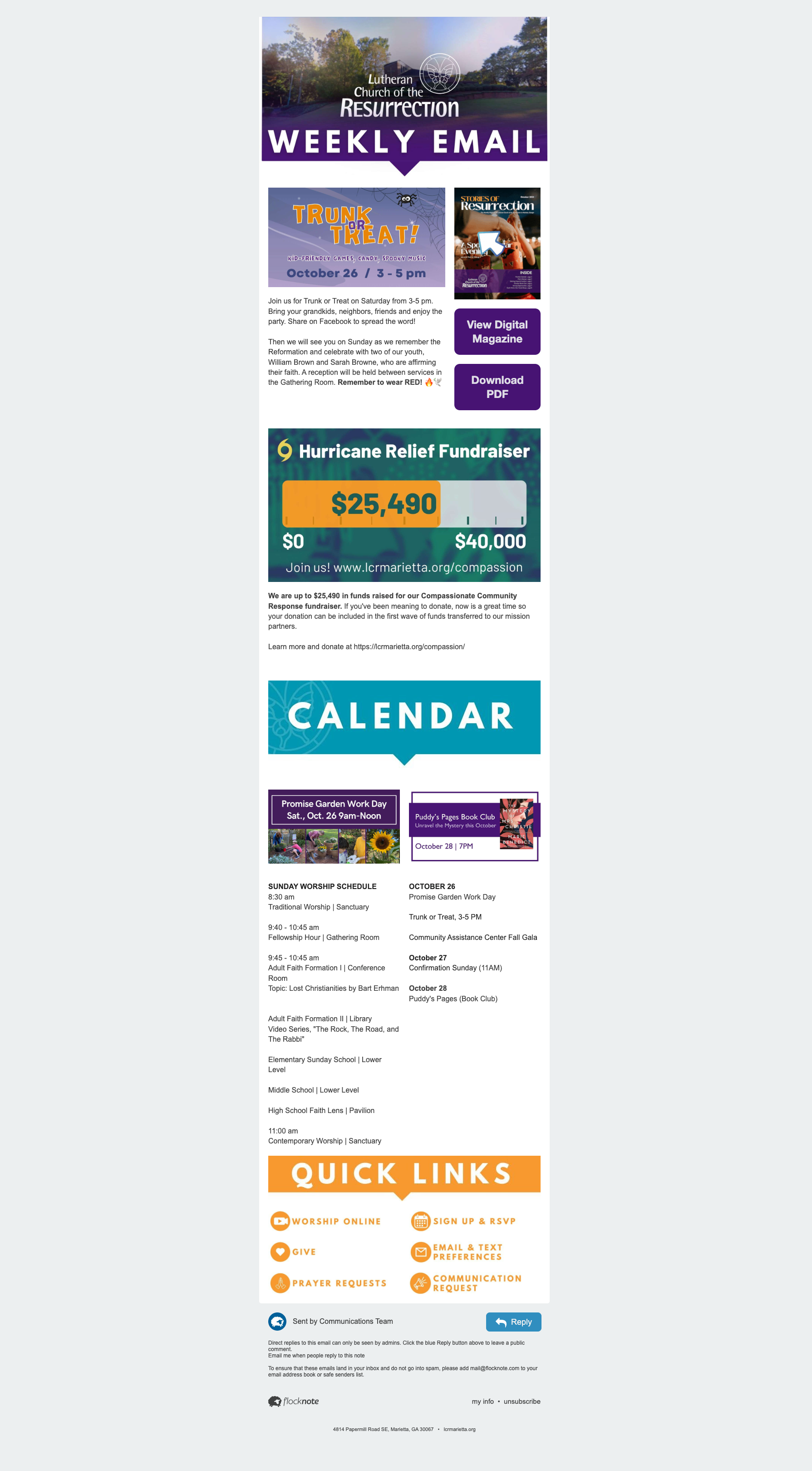 When we started working with Lutheran Church of the Resurrection in Marietta, GA, their email newsletter was a short preview of content only available when you clicked a link to visit their website and download the PDF version of their weekly newsletter.